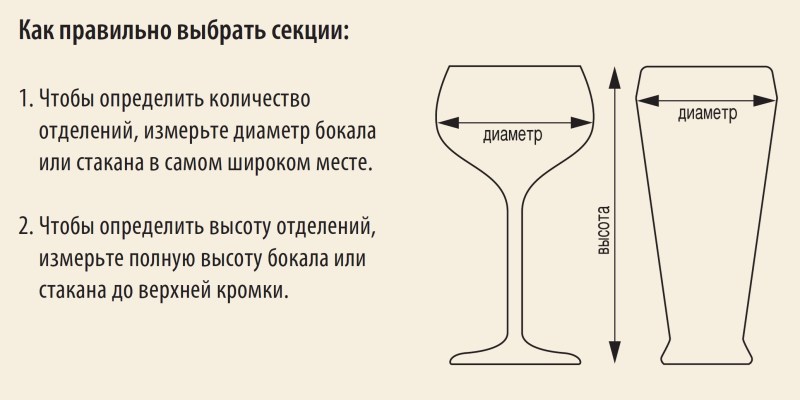 - Перегородки надежно фиксируют каждый бокал, предотвращая бой и сколы.