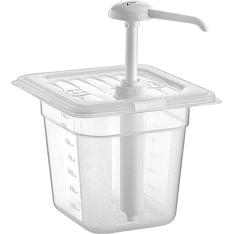 Помпа изготовлена из полипропилена и подает 20 мл соуса одним нажатием.