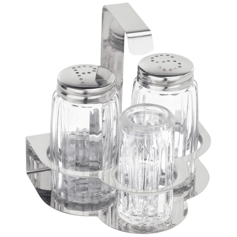 Стаканчик для зубочисток, солонка и перечница.