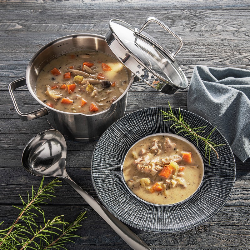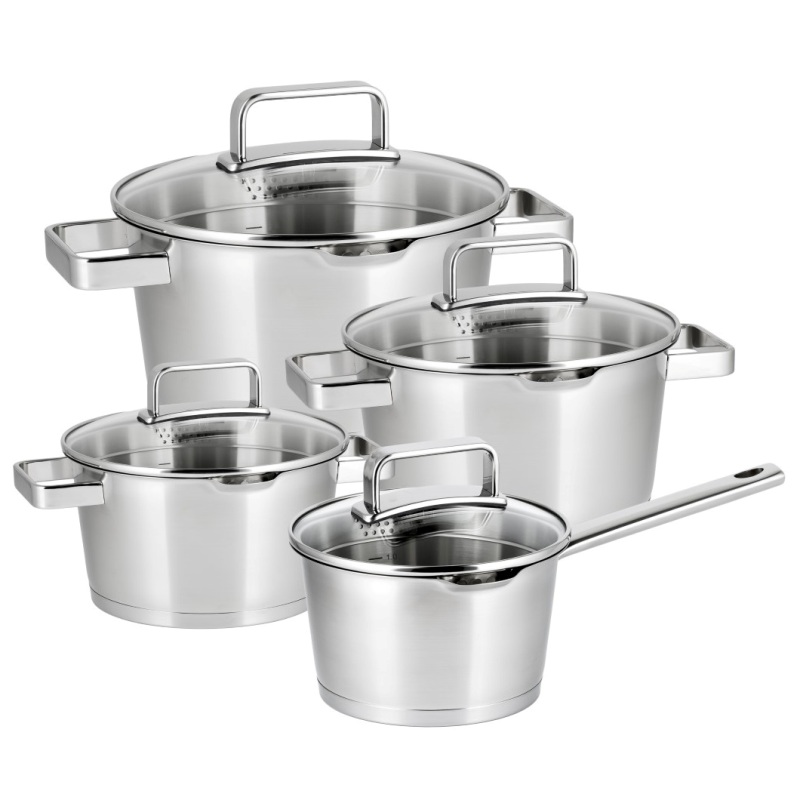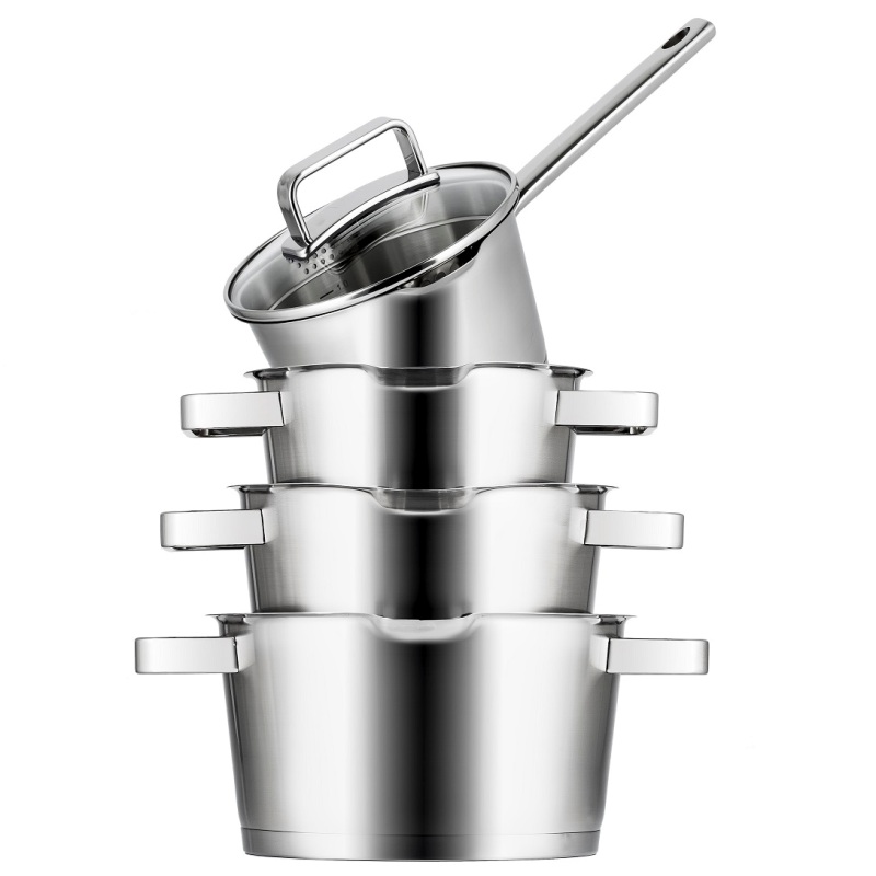 Коническая форма этого набора придает посуде современный вид. Благодаря матовой поверхности и глянцевым ручкам этот набор станет незаменимым на каждой кухне!