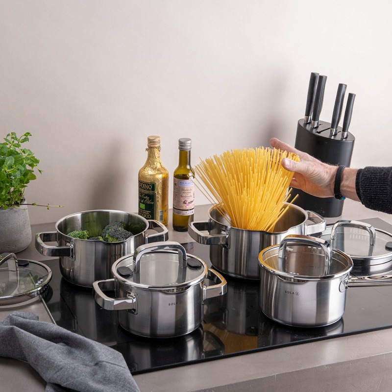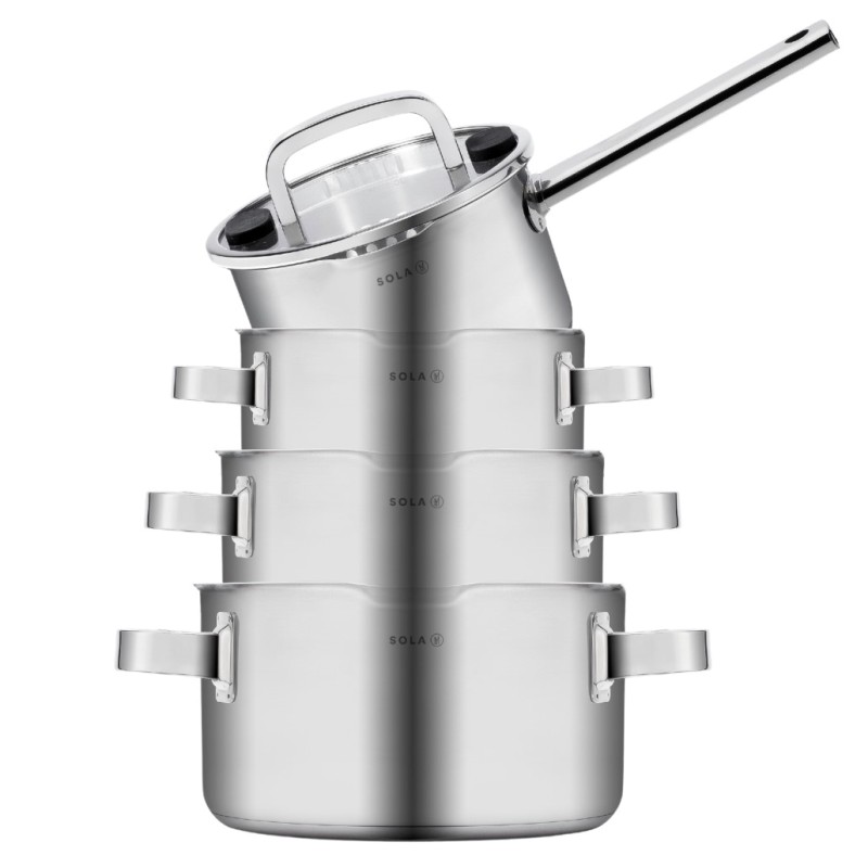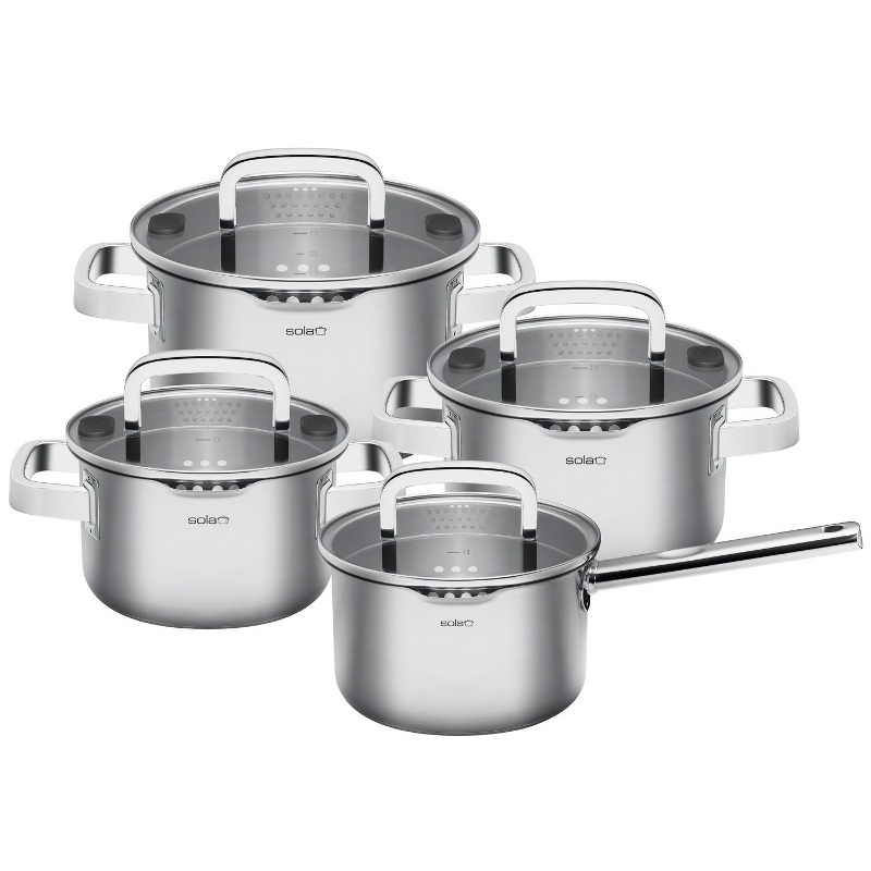 В стеклянных крышках имеется удобный дуршлаг, а также инновационные силиконовые накладки. Этот набор кастрюль для приготовления пищи станет настоящим украшением вашей кухни.