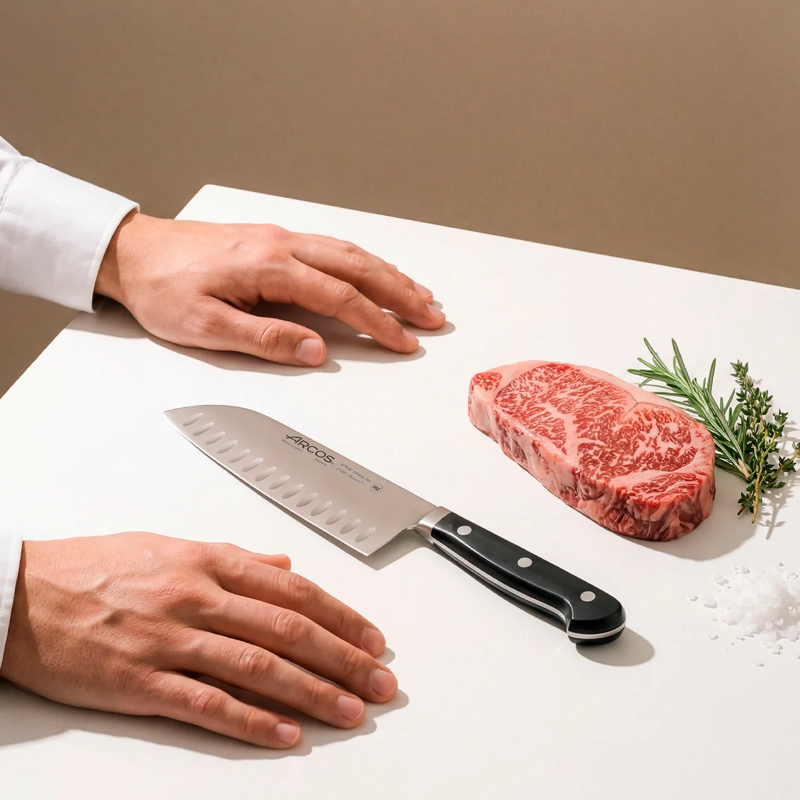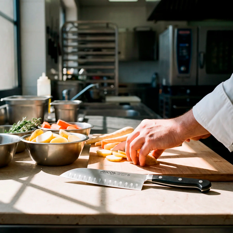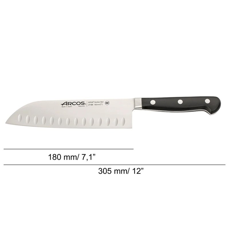 Используйте Arcos 180 мм Santoku для повышения скорости и маневренности на вашем рабочем месте.