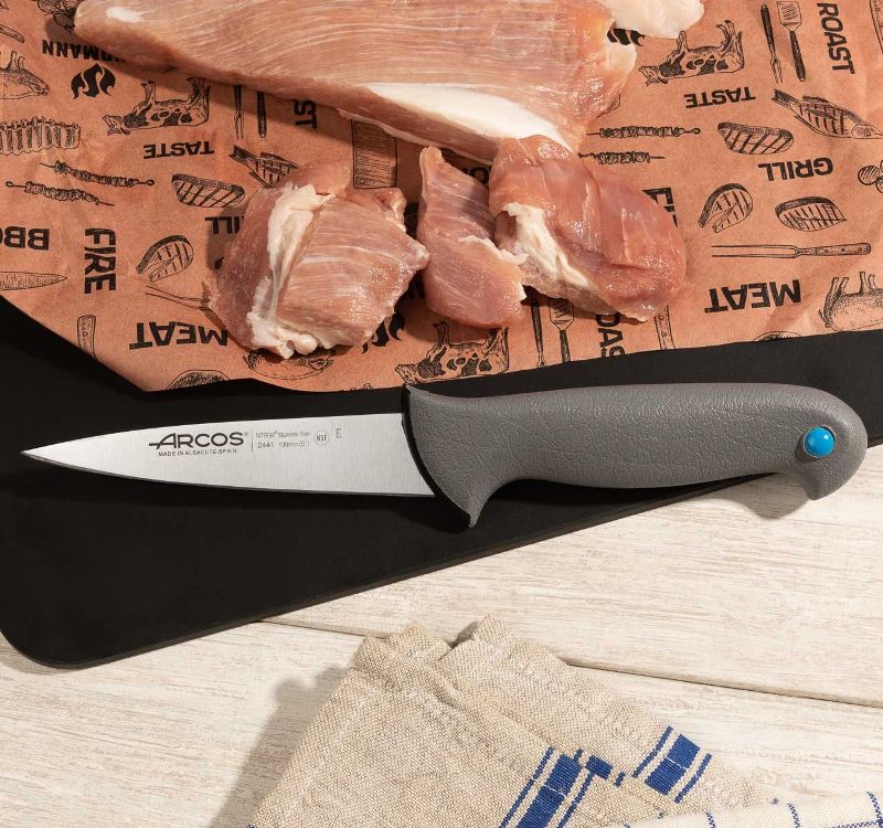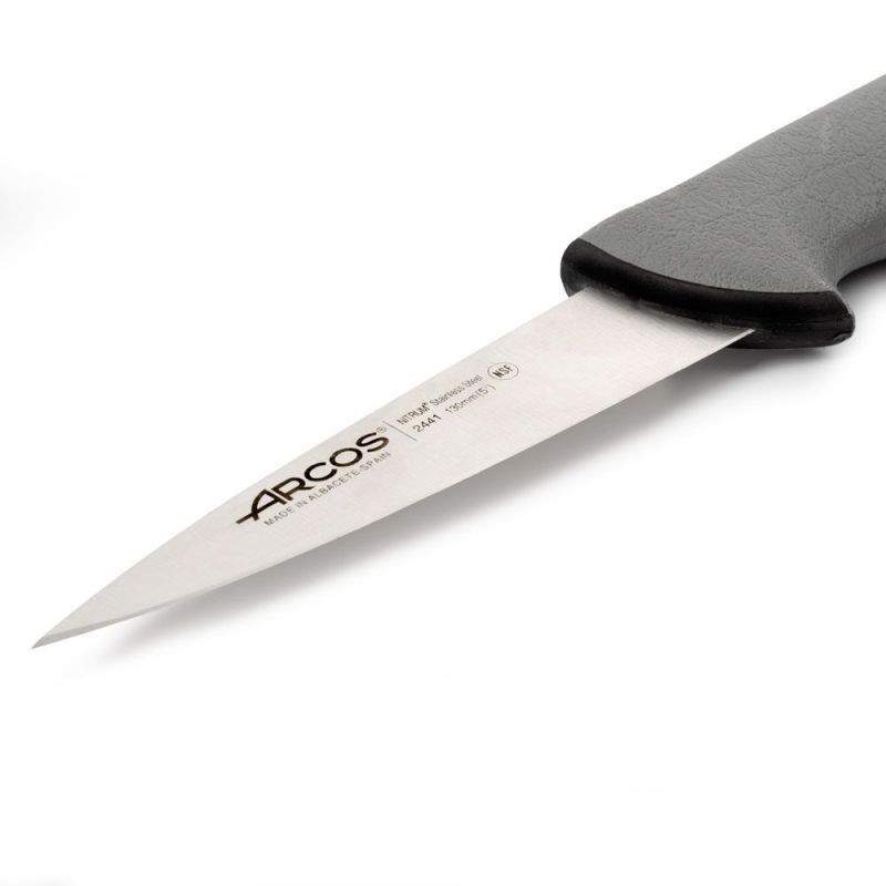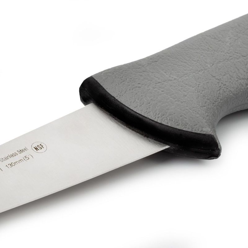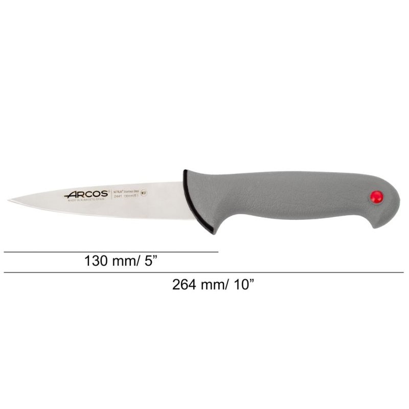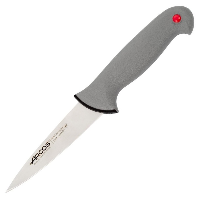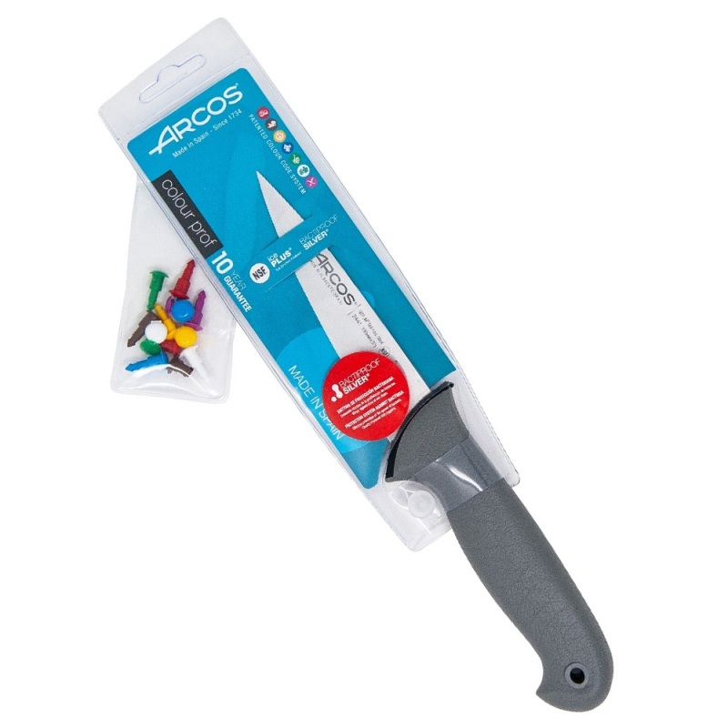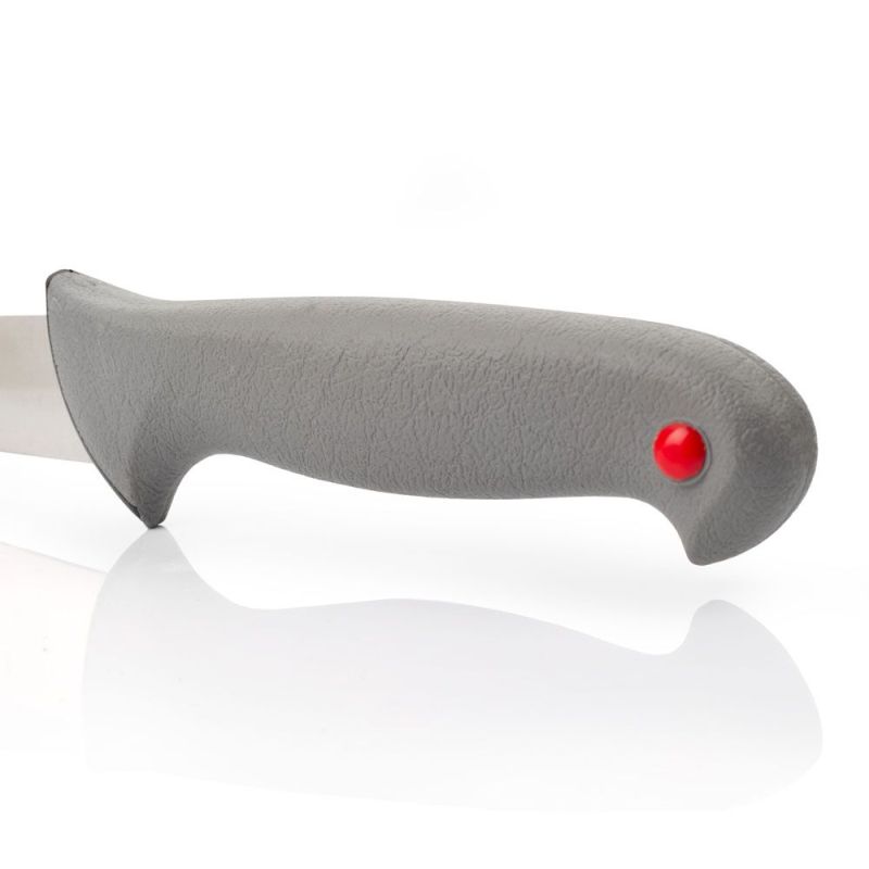 Лезвие ножа изготовлено из нержавеющей стали NITRUM®, а его гладкая кромка обеспечивает превосходное качество нарезки.Ручка полипропиленовая, покрытая резиной, и снабжена цветной кнопкой, позволяющей различать продукты, с которыми он будет использоваться.