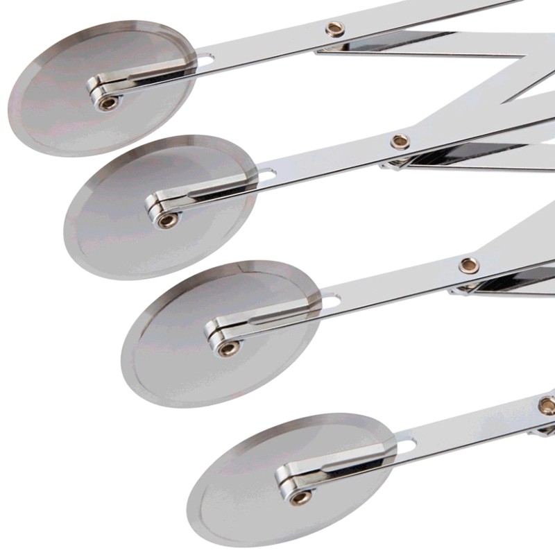 Дисковые (роликовые) раздвижные ножи для теста — это специализированный инструмент, применяемый в профессиональных пиццериях и кондитерских для быстрой и равномерной нарезки теста на полосы или сегменты одинаковой ширины. Их используют при среднем и крупномасштабном производстве, где важна скорость и точность.