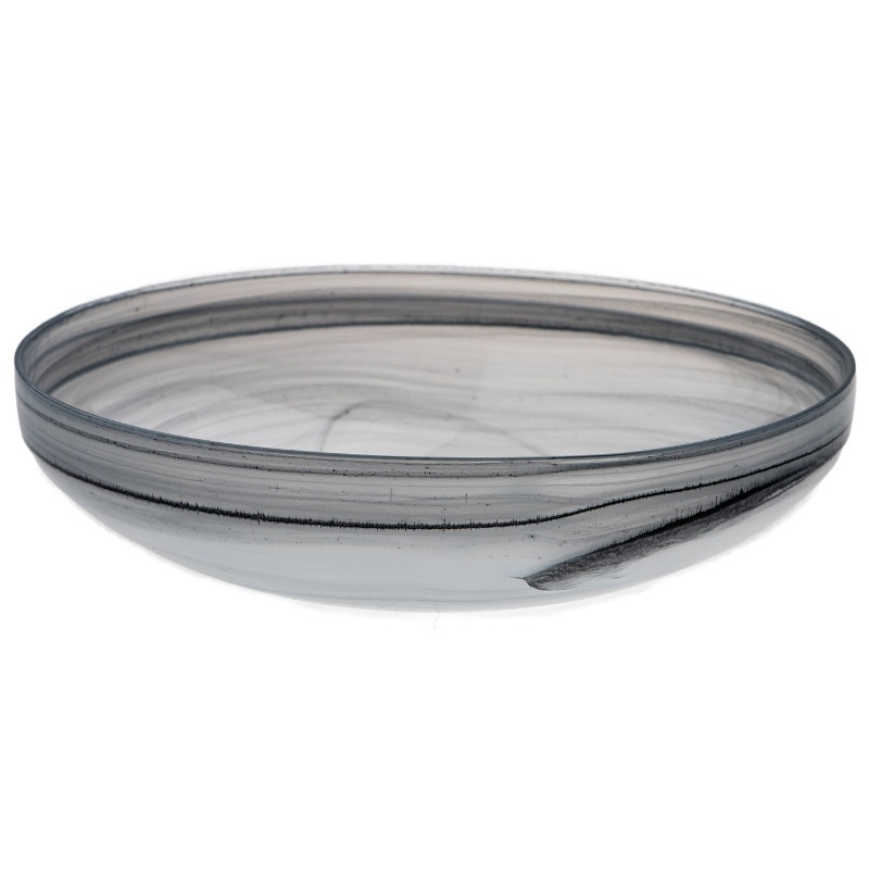 Стеклянный салатник 24 см - глубокая тарелка, блюдо из алебастрового стекла 240 мм, черно-белого цвета, коллекция Ethos