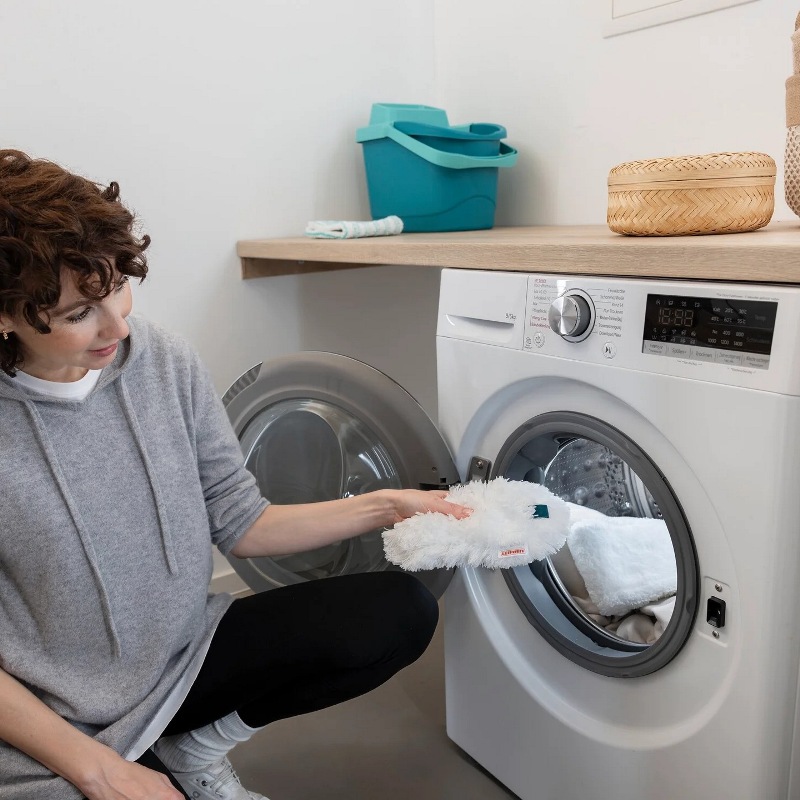 - Насадку для удаления пыли можно мыть до 50 раз при температуре 40°C в стиральной машине – это не только экономит деньги, но и сокращает количество отходов и защищает окружающую среду. Эффективность очистки остается неизменной даже после многочисленных стирок: пыль, волосы и аллергены надежно захватываются и удерживаются в волокнах.