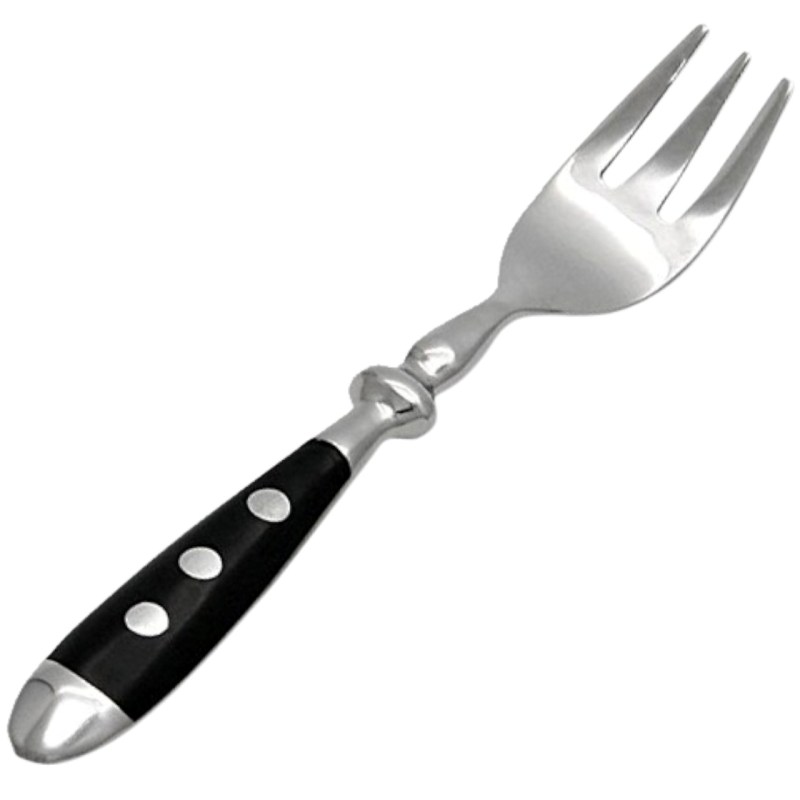 Черная ручка отделана тремя серебристо-белыми заклепками.