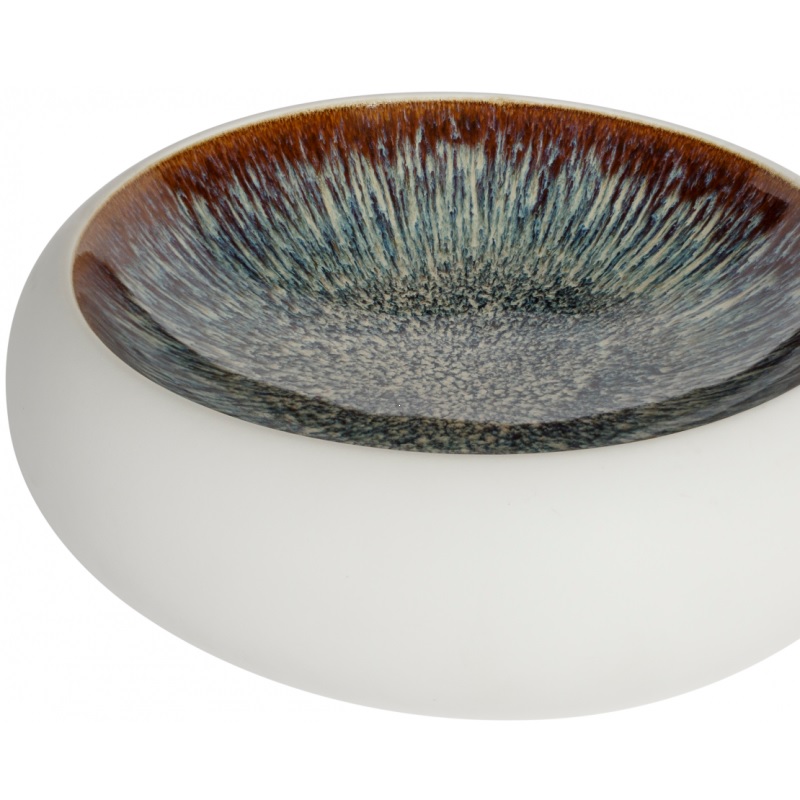 Тарелка MAUNA Ø23,3x(h)6,5см оригинальной формы. Высокие рельефные края нежно-белого цвета привлекают внимание к цветной внутренней стенке, где реактивное остекление создает яркий всплеск цвета.
