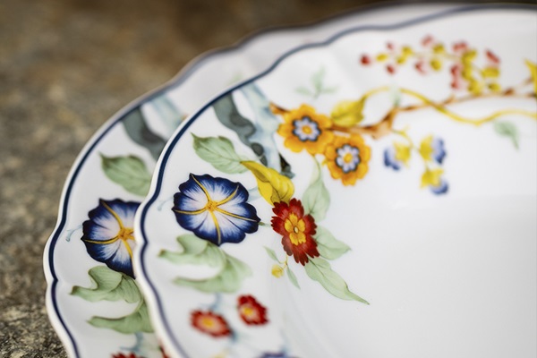 Коллекция изготовлена из фарфора, отличающимся прочностью и твердостью. Фарфор проходит две разные стадии обжига, во второй из которых температура превышает 1300°C.